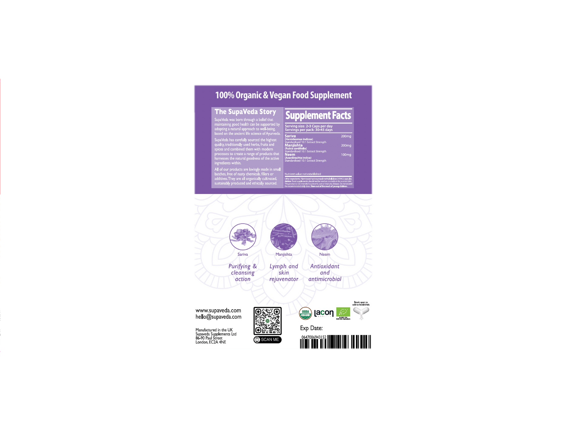 A blend of Sariva, Manjistha and Neem... and nothing else